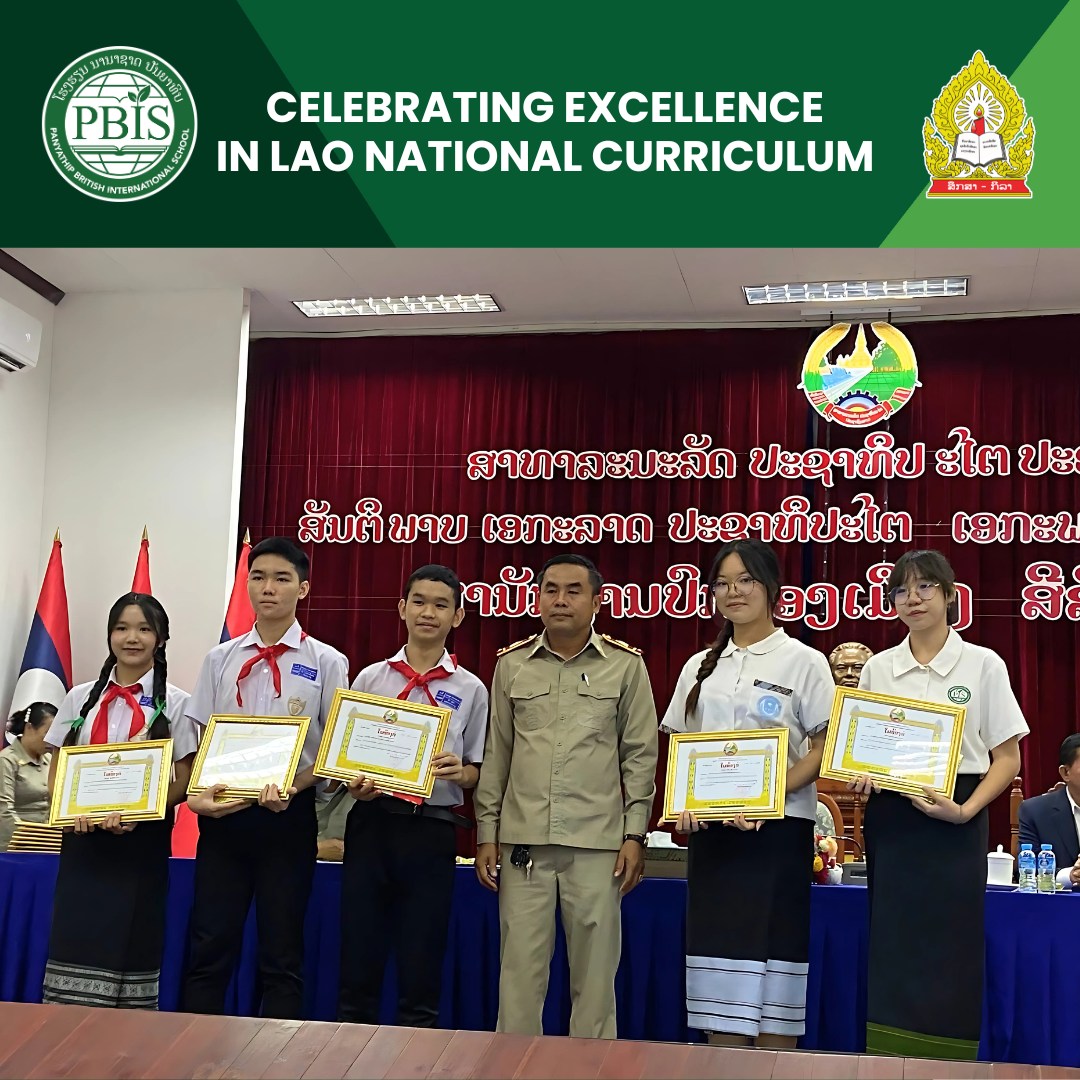 At Panyathip British International School, we are a British international school that also values and upholds the Lao national curriculum. As part of this commitment, 𝟖 𝐨𝐟 𝐨𝐮𝐫 𝐘𝐞𝐚𝐫 𝟏𝟎 students successfully received their 𝐂𝐞𝐫𝐭𝐢𝐟𝐢𝐜𝐚𝐭𝐞 𝐨𝐟 𝐂𝐨𝐦𝐩𝐥𝐞𝐭𝐢𝐨𝐧 for the 2024–2025 academic year from the Ministry of Education and Sports, each earning a score of 𝐚𝐭 𝐥𝐞𝐚𝐬𝐭 𝟕.𝟎.