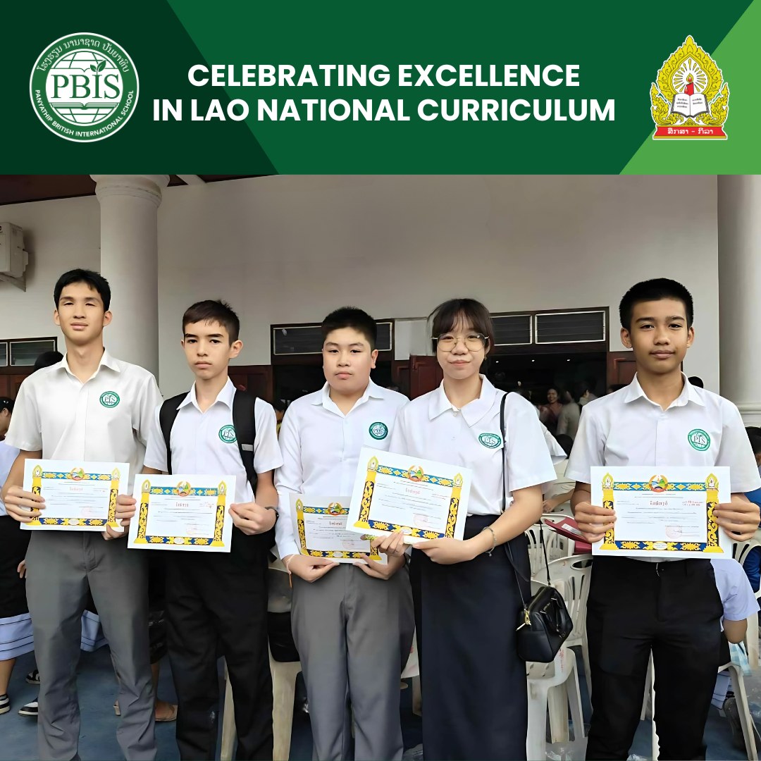 At Panyathip British International School, we are a British international school that also values and upholds the Lao national curriculum. As part of this commitment, 𝟖 𝐨𝐟 𝐨𝐮𝐫 𝐘𝐞𝐚𝐫 𝟏𝟎 students successfully received their 𝐂𝐞𝐫𝐭𝐢𝐟𝐢𝐜𝐚𝐭𝐞 𝐨𝐟 𝐂𝐨𝐦𝐩𝐥𝐞𝐭𝐢𝐨𝐧 for the 2024–2025 academic year from the Ministry of Education and Sports, each earning a score of 𝐚𝐭 𝐥𝐞𝐚𝐬𝐭 𝟕.𝟎.