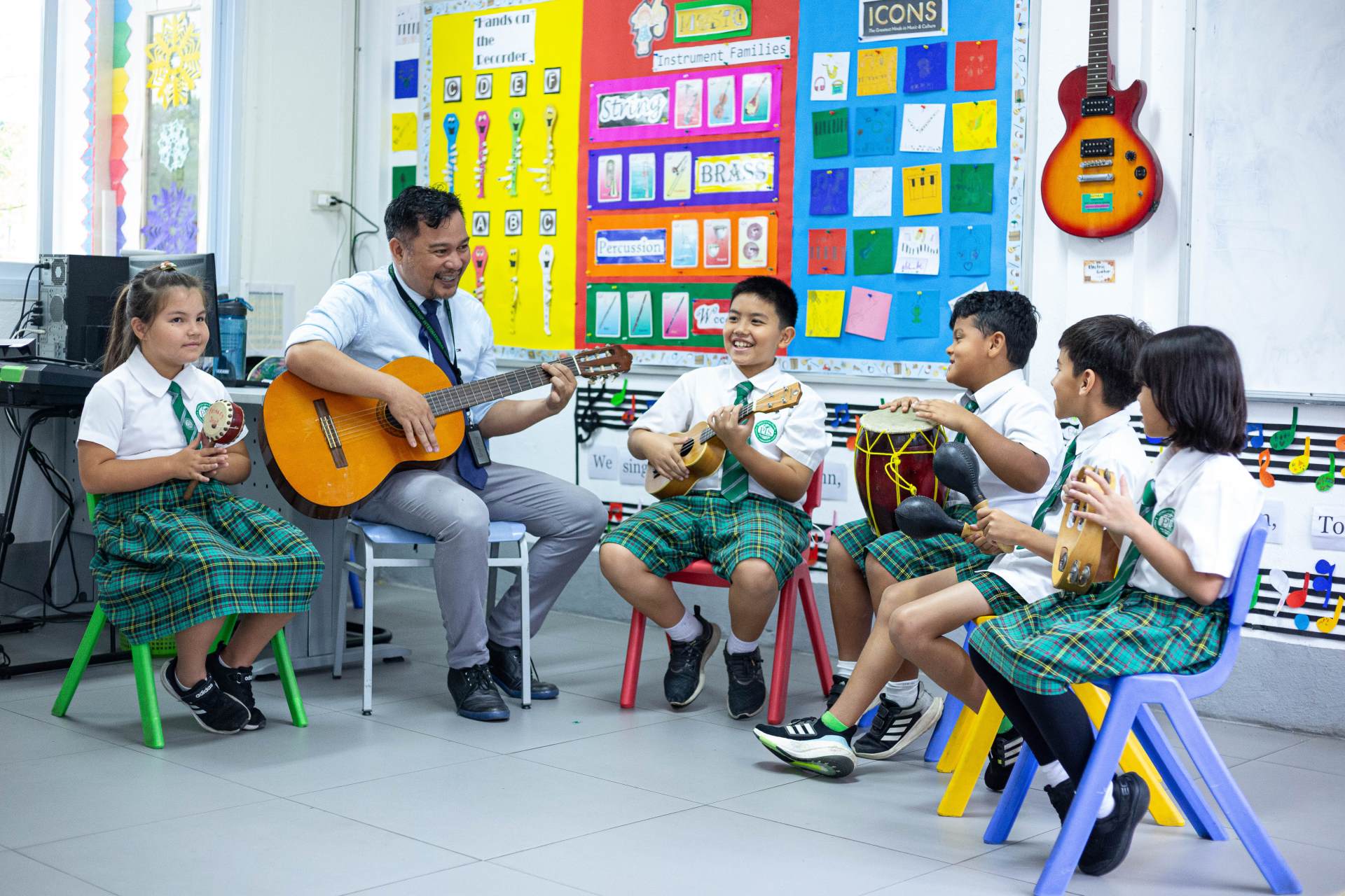 In addition, primary students engage with the International Primary Curriculum (IPC), which employs a project-based, cross-curricular and thematic approach to education. This curriculum emphasises hands-on learning, fostering critical thinking and problem-solving skills in an engaging and dynamic environment. The IPC covers three mileposts: Milepost 1 for Years 1 and 2, Milepost 2 for Years 3 and 4, and Milepost 3 for Years 5 and 6. Each theme is carefully designed to connect various subjects in an integrated and captivating way. Themes such as ‘Chocolate,’ ‘Footprints From the Past,’ ‘From A to B,’ ‘Material World,’ and ‘Go with the Flow’ bring diverse disciplines like history, geography, science, art, music and technology into lively, interconnected explorations.